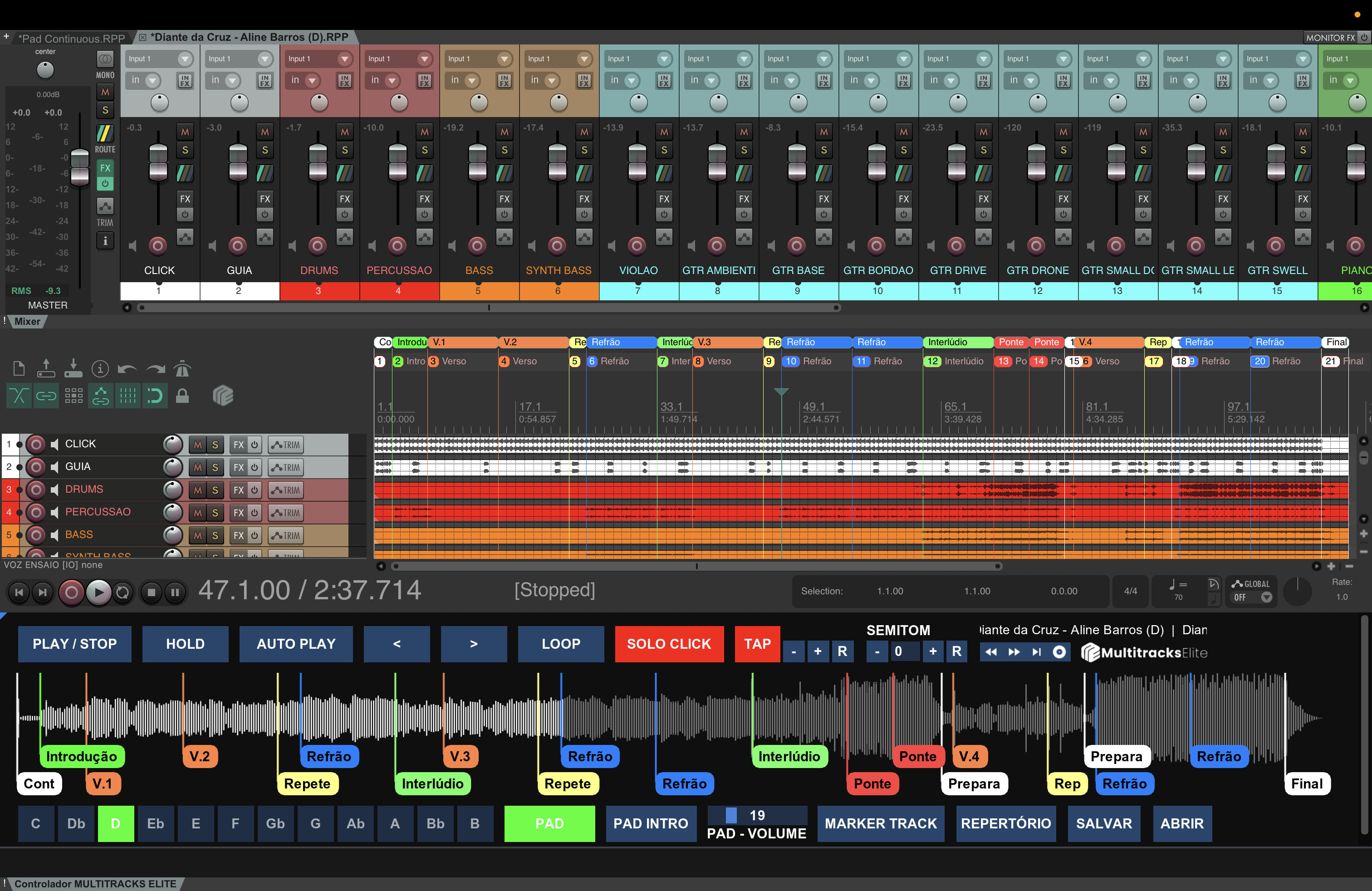 Script para operação ao vivo e controle rápido da sessão na DAW.